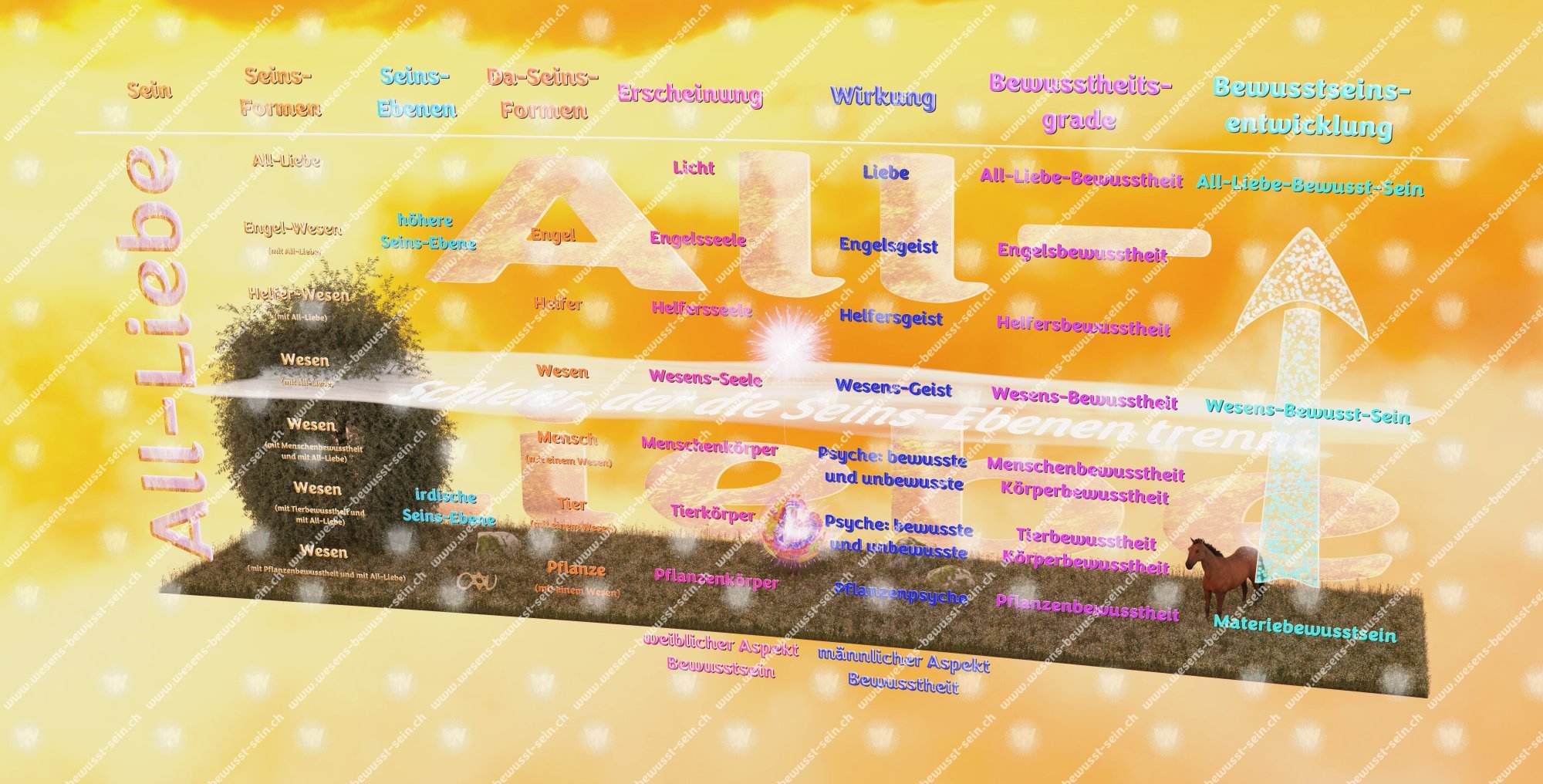 Einerseits umfasst das Bewusstsein das Meer aller menschlichen Erfahrungen – das Menschenbewusstsein – und andererseits alle Erfahrungen als Wesen – das Wesens-Bewusst-Sein –, auf die die Wesens-Bewusstheit zugreifen kann. Das Wesens-Bewusst-Sein ist Licht.